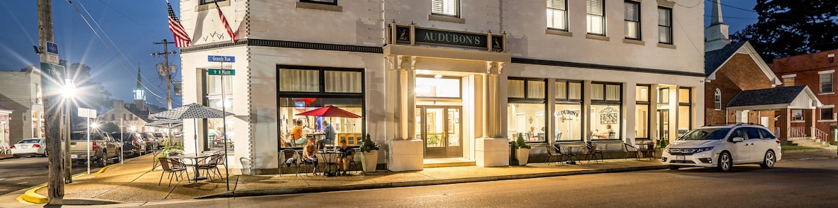 Enjoy easy access to popular shops and restaurants from this charming place to stay. Step back in time and discover the enchanting history of the Dr. Hertich House with a cozy stay at The Hertich House Heritage Hotel in Ste. Genevieve, MO. The Governor's Suite welcomes guests with a blend of old-world charm and modern comforts, such as a private jacuzzi tub and romantic fireplace.