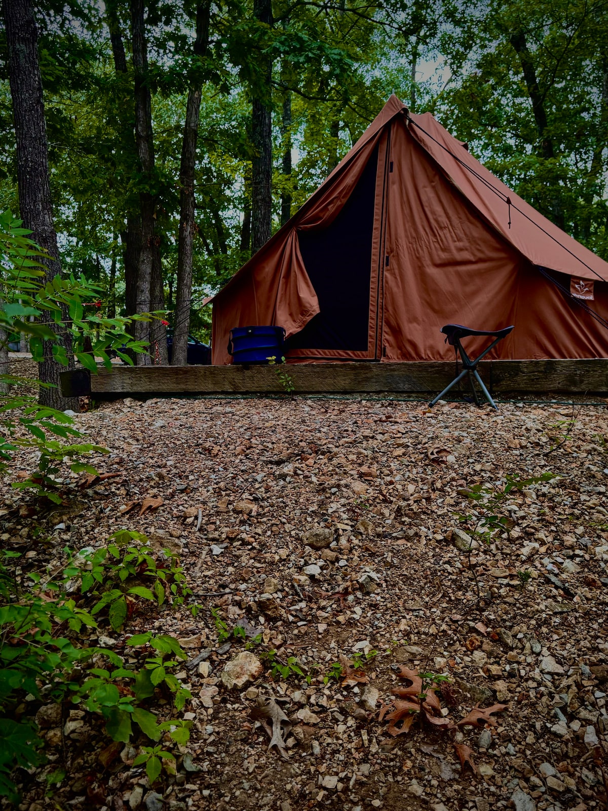 Glamorous Camping coined GLAMPING. Whether visiting the area to float, site-see, hike, or hunt, this Airbnb is the perfect getaway. located just minutes from Eminence Missouri, the canoeing capital of the world. This canvas getaway allows you to kick back and relax, and feel the beauty of the forest while you experience camping in luxury! Yes a real bed, the best there is...chairs and picnic table outside, a wood stove when the weather calls for it, and a private outdoor loo.