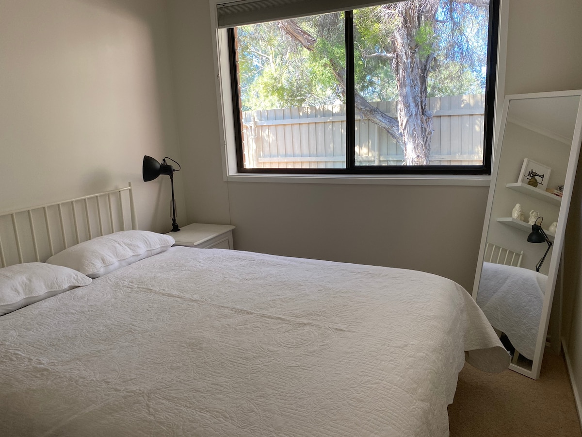 Cosy, peaceful, self contained, new studio is located at the back of a tranquil garden of a private residence. Fully equipped kitchen and furnished courtyard with BBQ. You get a private entrance from your own undercover car spot and fenced yard. 'The Den' is a peaceful , secure little gem. Tucked away and almost out of sight, yet centrally located close to Woden Town Centre, 5 minute walk local shops/cafes, 5 minute drive to the Woden Town Centre. Cannot accommodate children under 2.