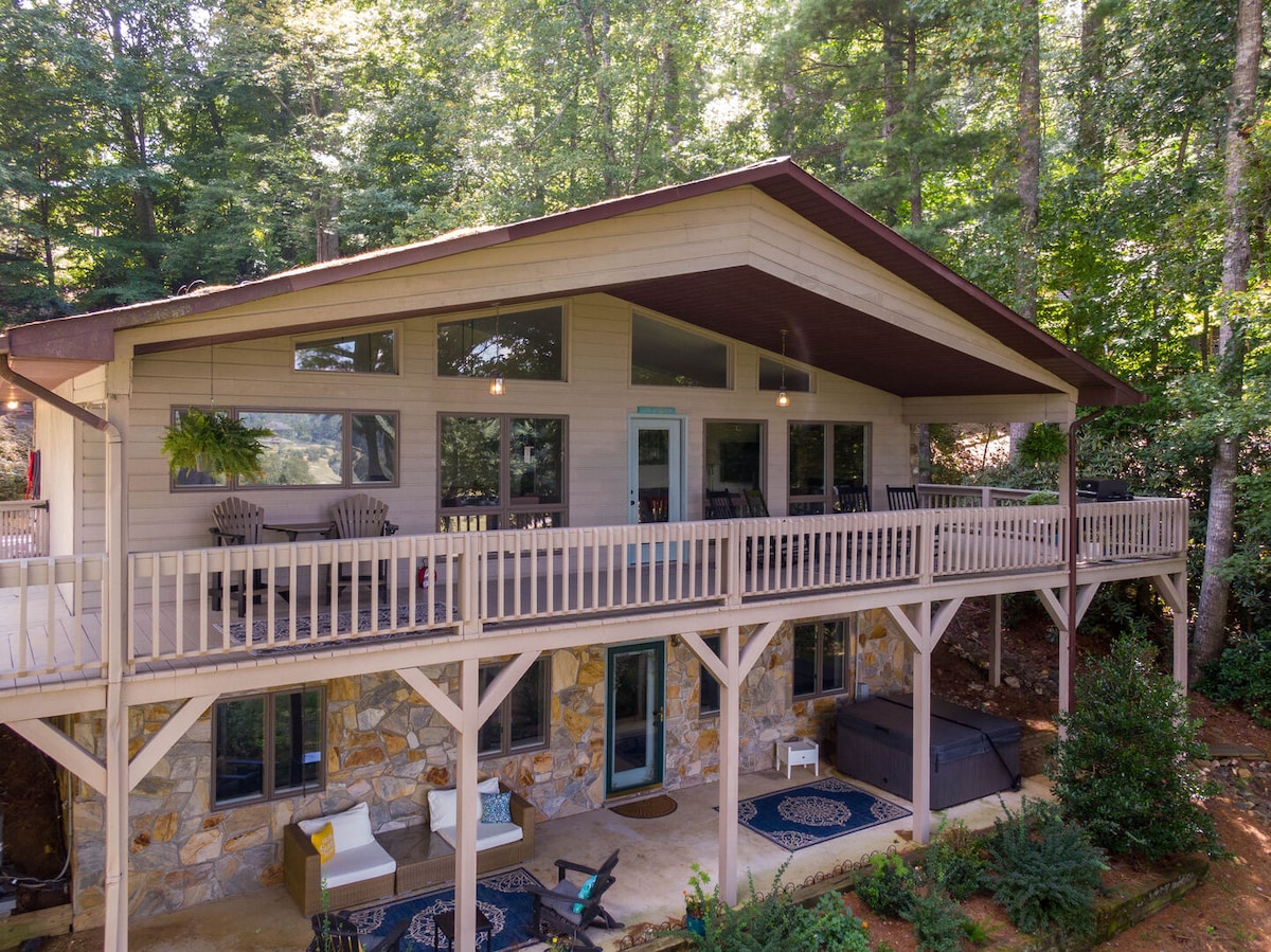 Surround yourself in the majesty of the Blue Ridge Mountains. Our completely renovated mountaintop cabin sits on 4 unspoiled acres with ultimate privacy and breathtaking views. Enjoy a glass of wine or have dinner on the spacious deck overlooking the valley. Count shooting stars soaking in the outdoor hot tub. There's so much nearby: Asheville's culinary & arts scene, hiking, skiing, Appalachian Trail, Blue Ridge Parkway, mountain biking, waterfalls, zip-lining, planetarium and so much more.