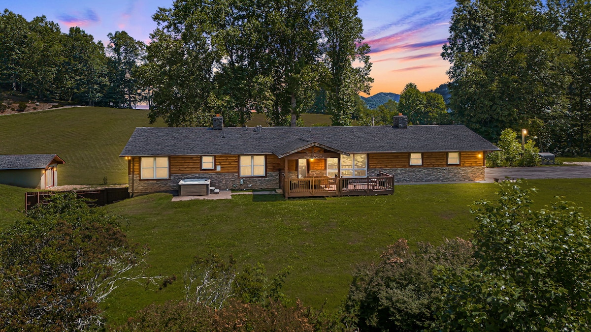 Welcome to beautiful Sunset Mountain Lodge, a 3-bedroom (plus a loft), two-bath home, on a secluded six acres of property with stunning sunset views. Relax and unwind on the large porch overlooking the mountains, enjoy hiking on the property, soak in the hot tub, or roast marshmallows by the fire pit. The house is close to many area attractions, grocery stores, and great restaurants, with downtown Spruce Pine and Burnsville nearby. This is the perfect mountain getaway!