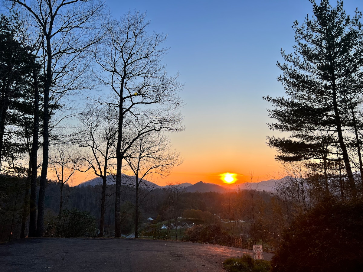 Perched on a hill above the N. Toe River at the end of the road you’ll find Dougs Way, a modern cabin with huge picture windows that frame long range mountain views as if it were art. Surrounded by old oaks and loblolly pines, the property is quiet and never cookie cutter. You’ll love the Japanese soaking tub, two-sided fireplace, gourmet kitchen, robust coffee/tea setup, and the true craftsmanship found in the artwork and handmade details like the bent cherrywood “cloud” above the dining table!