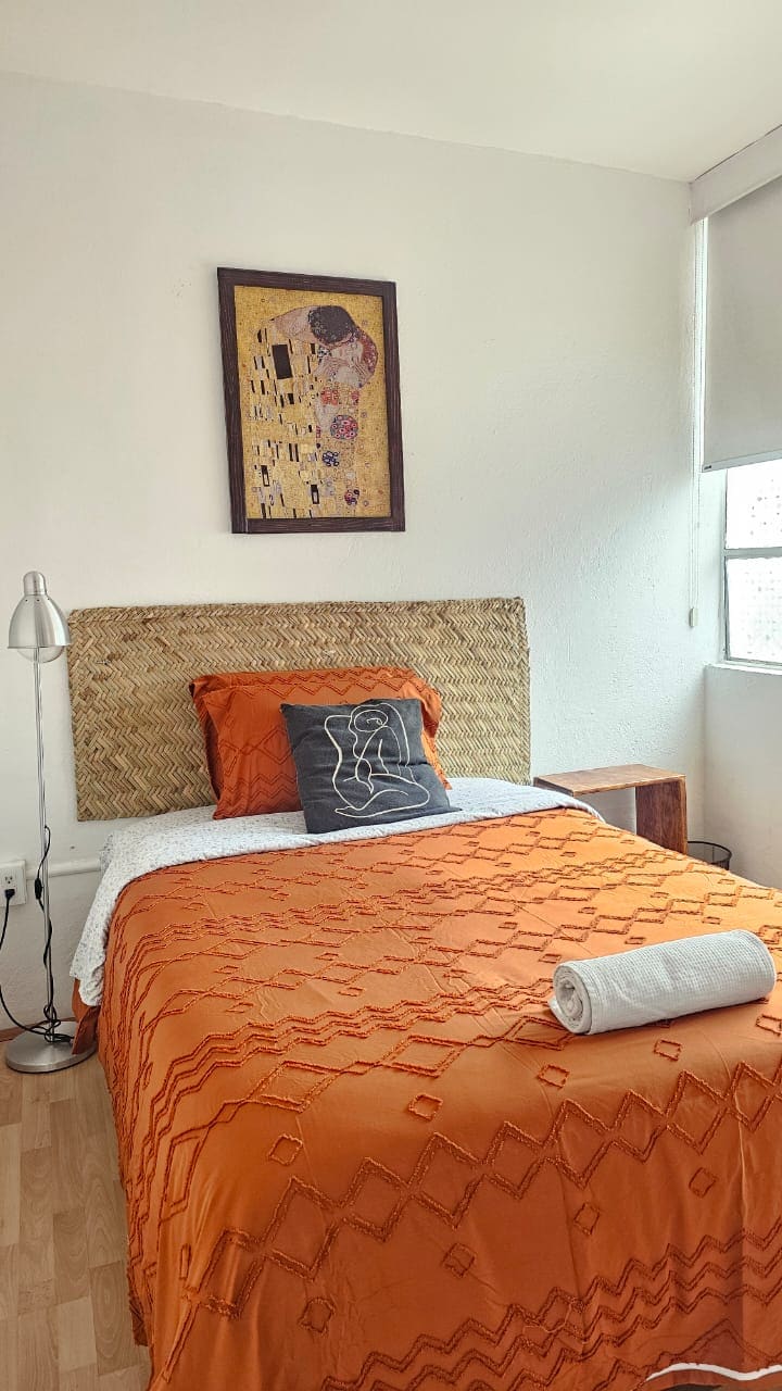 Agradable y acogedora habitación con terraza privada en el corazón de Coyoacán, uno de los barrios más pintorescos y tradicionales de la Ciudad de México. Ubicado a 5 minutos caminando del centro de Coyoacán, de restaurantes tradicionales, cafes, bazares de artesanías y museos.