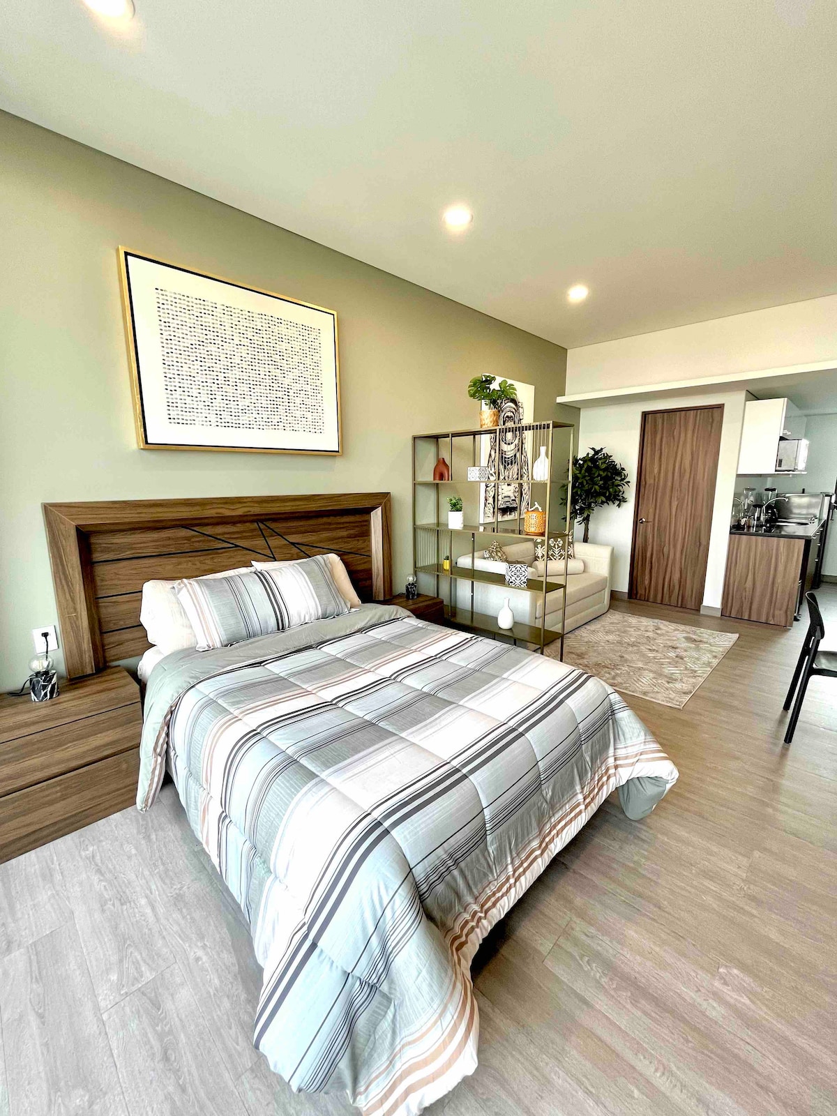 El Departamento se encuentra dentro de un moderno desarrollo,construido con lo último de las Normas de Construcción, lleno de amenidades, como Gym, piscina, etc., se encuentra excelentemente bien ubicado, céntrico zona de oficinas, zona Hotelera, plazas comerciales, zonas recreativas y culturales y con todos los medios de transporte. El departamento cuenta con todo lo necesario para hacer tu estadía placentera, 100% amueblado y equipado y con un balcón con una excelente vista., Internet de 50 MG