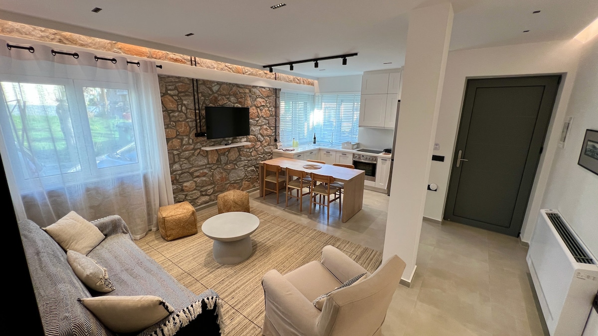 This modern, newly renovated home is just 1.2 km from the center of Mytilene and accommodates up to 4 guests. It features a large garden, is pet-friendly, and offers a comfortable, stylish space with all modern amenities. Ideal for those looking for a peaceful stay with easy access to the city.