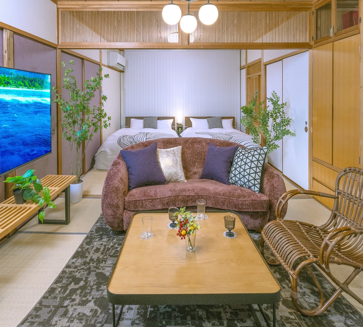 坐落在热闹街区深处的日式隐居之所。 在拥有茶室和庭院的古民宅中,度过一段放松身心的时光吧。 距离瓦町站步行仅需3分钟,这栋隐藏在热闹商店街尽头的独栋住宅,仿佛让人穿越回过去的年代。 这里位于日本最长的商店街中,适合串逛居酒屋、药妆店,以及购买平价化妆品。 还有高端品牌的精品店,满足不同客人的购物需求。 作为前往岛屿巡游、四国遍路或寺庙巡礼的据点,这里也拥有便捷的交通。 一楼设有客厅、厨房与茶室,二楼则有两间卧室。 卧室经过隔音处理,尽量降低外界噪音的干扰。 茶室可自由使用,夜晚时可打开灯光,在柔和照明下欣赏美丽庭院,享受宁静时光。 本民宿位于充满活力的繁华街区, 因此在某些时段,可能会感受到街道的热闹氛围。 若您偏好绝对安静的环境,我们或许不是最佳选择; 但若您喜欢热闹、有趣的城市氛围,相信这里会让您满意而归。 欢迎在充满古朴日本风情的空间中,度过一段难忘而特别的时光。 我们衷心期待您的预订。