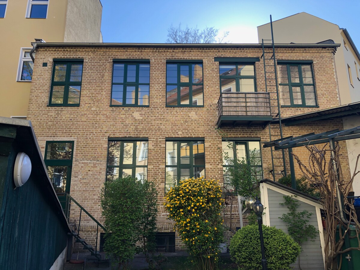 Welcome to our charming Remise in one of Berlin's most beautiful neighborhood! We have lovingly renovated this unique historic building and furnished it to the highest standards. Travelers to Berlin, artists will love the excellent acoustics, audio equipment (Nord Stage, Genelec, ...), and the awesome grand piano. This freestanding, three-story house features a terrace and grill, offering a retreat while being located in the heart of Berlin’s best bars and restaurants, Spree River and the Canal.