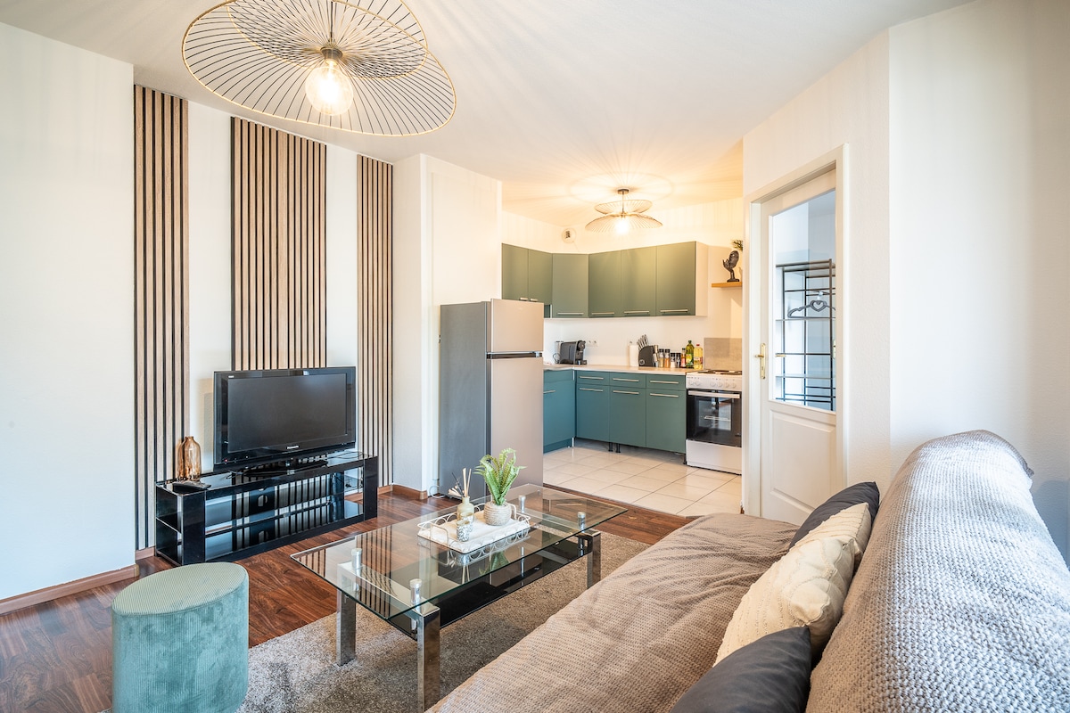 Herzlich willkommen in unserer gut ausgestatteten 2-Zimmer-Souterrain-Ferienwohnung im idyllischen Hartheim am Rhein. Mit dem modernen Badezimmer, der Küchenzeile, dem Kingsize-Bett, der großzügigen Schlafcouch und einer Terrasse, welche ebenfalls in den warmen Monaten möbliert ist, legen wir den Fokus auf Ihr Wohlergehen. Wir geben unser Bestes, Ihnen eine gute Zeit zu bescheren.