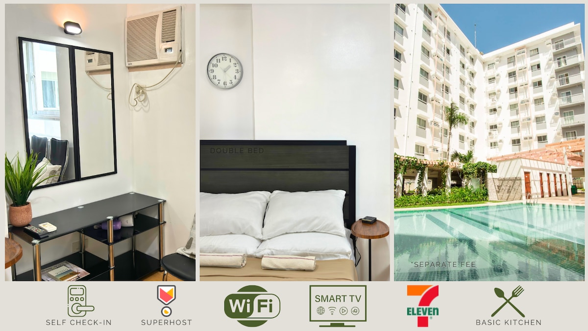 Stay in the heart of Cebu City at our 20 sqm studio in Mivesa Garden Residences. Great for travelers who want to explore the city and need a practical place to rest at the end of the day. Includes fast WiFi, a double bed, and a functional kitchen for simple meals. For a small fee*, you can swim in the pools or use the gym. Just outside are a 7-Eleven, massage spa, ATM, & laundry. Close to malls and attractions, this clean and well-maintained space makes a great base for your Cebu City stay.