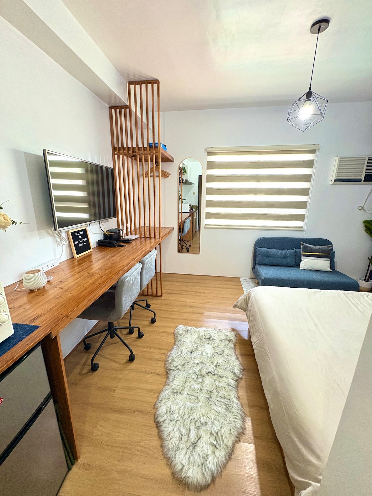Enjoy a peaceful stay at this minimalist studio. Perfect for solo travelers, couples, or business guests, this space offers comfort, convenience, and a serene atmosphere. 🛏️ Inside the Unit: ✅ Spacious queen-size bed ✅ Fast Wi-Fi ✅ Smart TV with Netflix ✅ Kitchen equipped for light cooking 🏡 Amenities: ✅Two Swimming Pools ✅ Fully-equipped Gym ✅ 24/7 Reception, clubhouse, kiddie playground, open chapel, roof deck, and jogging grounds 🛒 Just Outside the Property: 7-Eleven, laundry, and spa