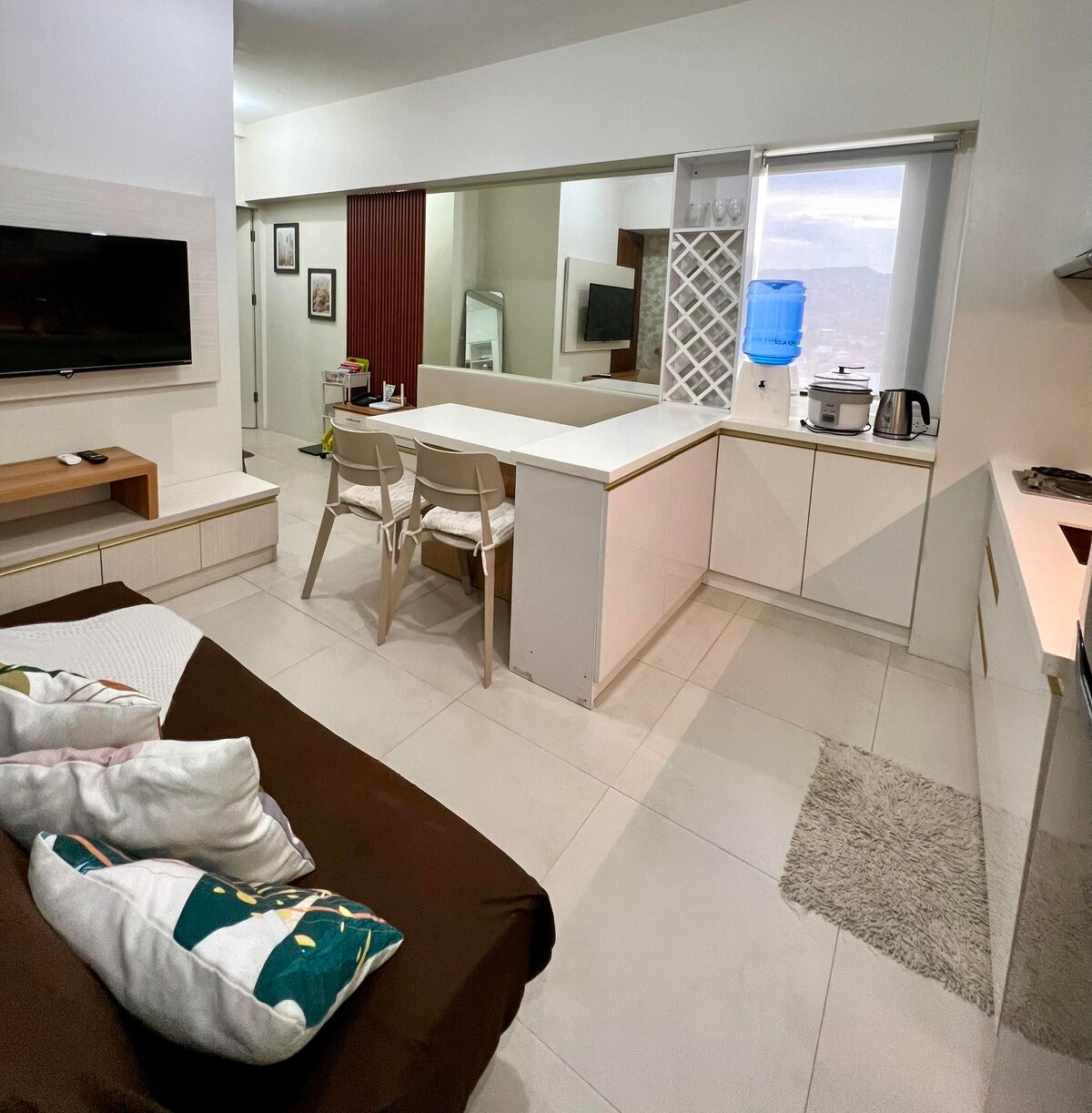 Welcome to our fully-furnished studio unit, thoughtfully designed to give you all the comforts of home. Located right at the heart of the city, our space offers a peaceful ambience and a relaxing view of both the city skyline and the lush gardens of IT Park. Whether you’re here for business or leisure, you’ll find everything you need for a comfortable stay. As your host, I’m always happy and ready to assist you to ensure your experience is smooth and enjoyable. Book your stay now!