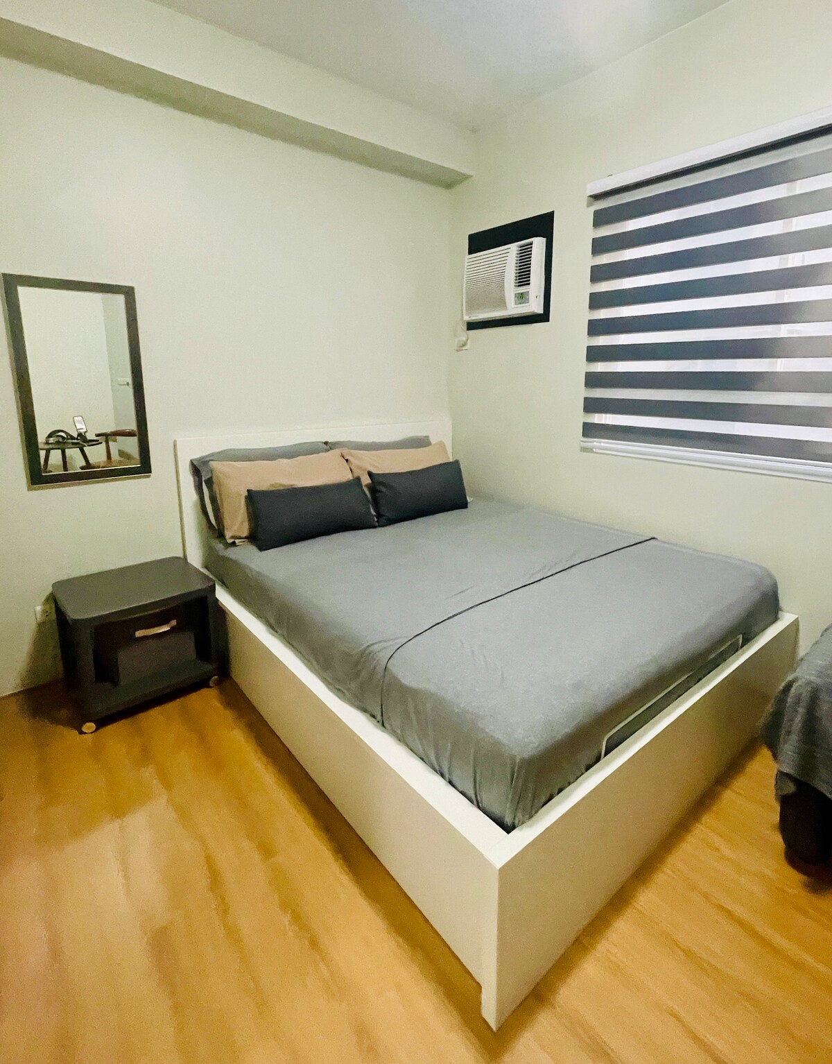 Enjoy a peaceful stay at this minimalist studio. Perfect for solo travelers, couples, or business guests, this space offers comfort, convenience, and a serene atmosphere. 🛏️ Inside the Unit: ✅ Spacious queen-size bed ✅ Fast Wi-Fi ✅ Smart TV with Netflix ✅ Kitchen equipped for light cooking 🏡 Amenities: ✅Two Swimming Pools ✅ Fully-equipped Gym ✅ 24/7 Reception, clubhouse, kiddie playground, open chapel, roof deck, and jogging grounds 🛒 Just Outside the Property: 7-Eleven, laundry, and spa