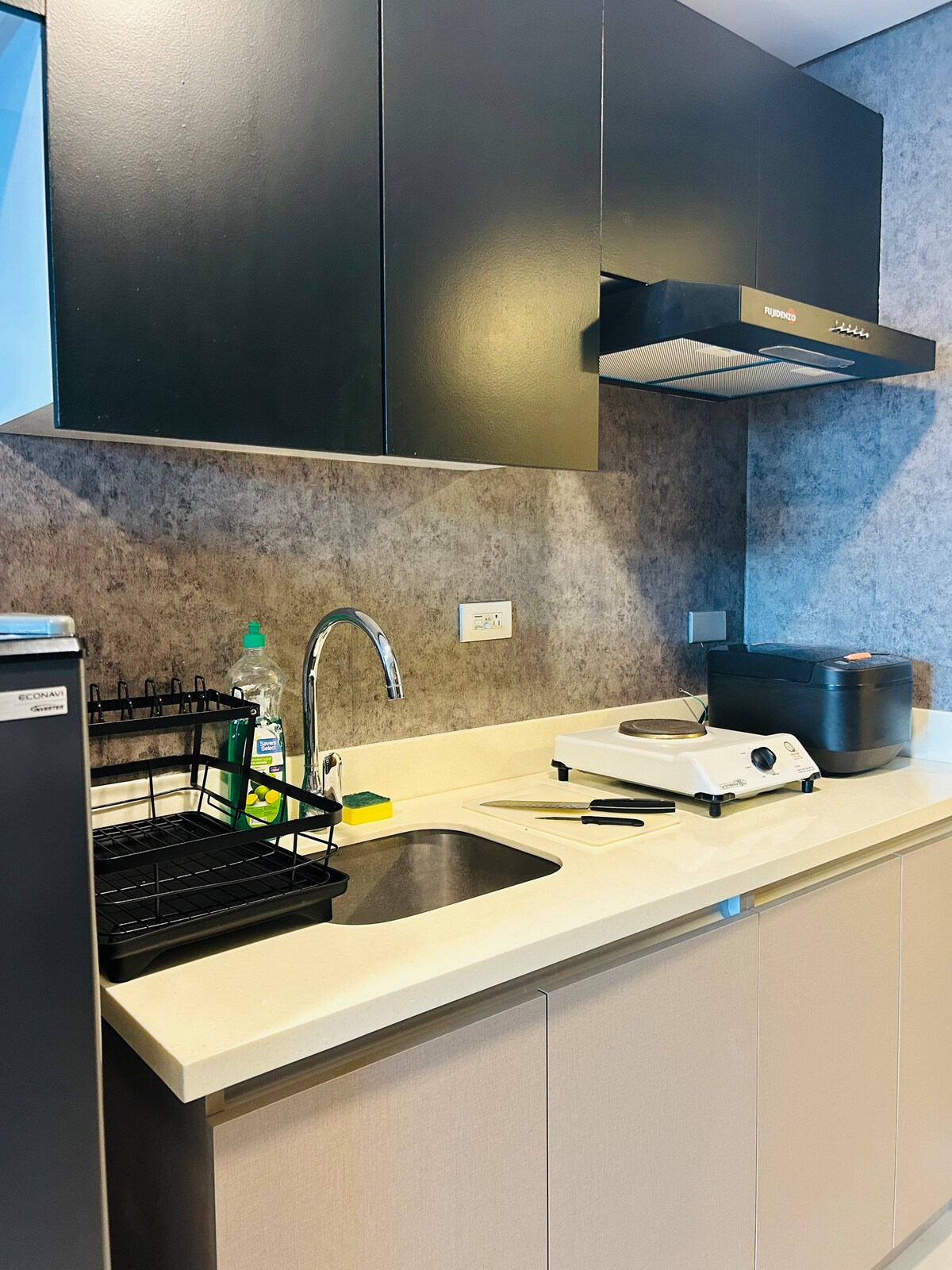 Experience high-end living in this prime 22nd-floor luxury studio at Park Avenue 38, IT Park, offering elegant city and bay views. Good for four people. Enjoy your private cinema projector, plush sofa bed, indoor plants, and germ-killing AC. Features hot & cold shower, full cooking facilities, and daily housekeeping. 7-Eleven is at the entrance, surrounded by the best 24/7 coffee shops and upscale restaurants.