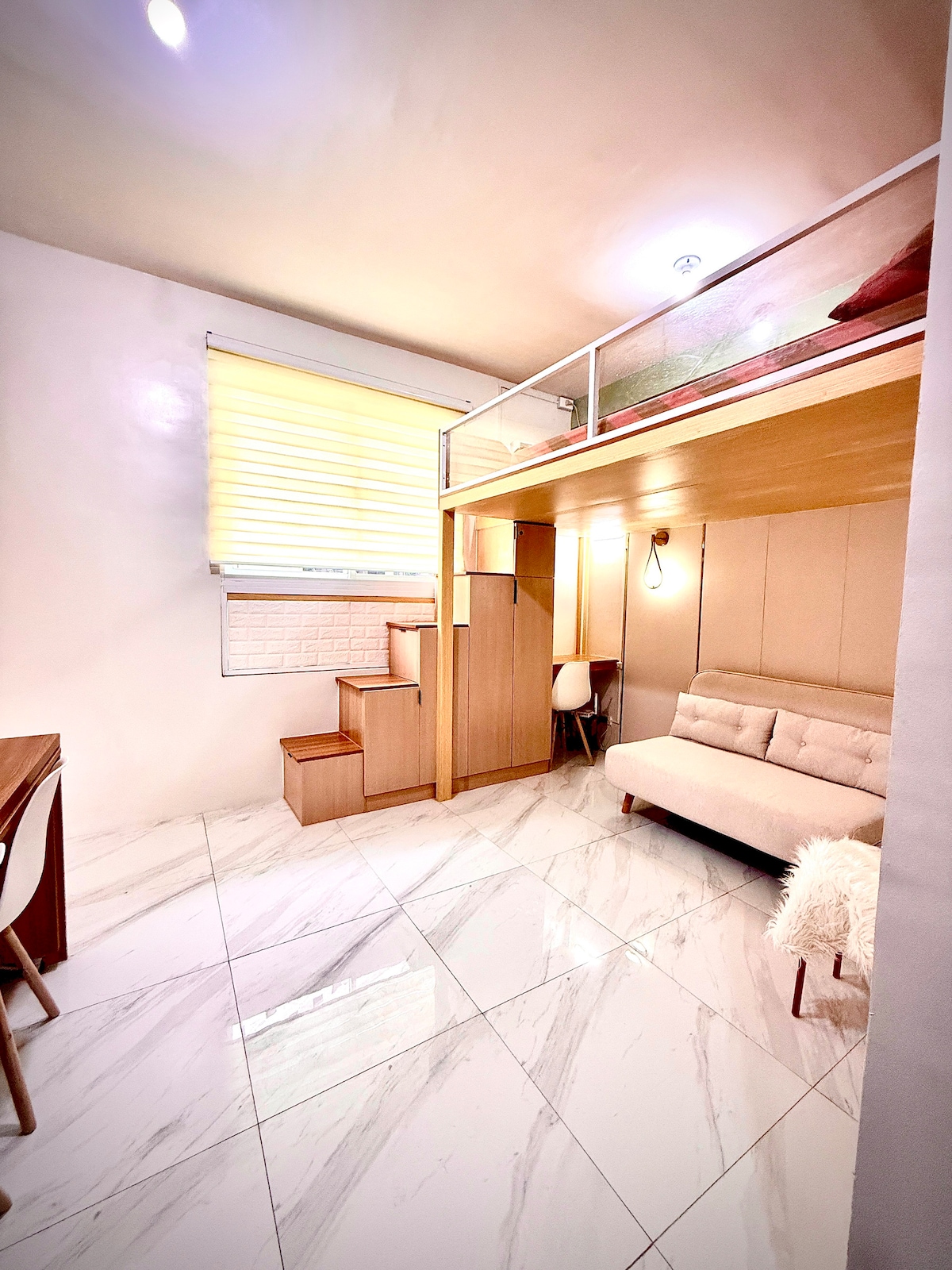 Discover the beauty of simplicity in this thoughtfully designed Scandinavian-Japanese (Japandi) loft studio at Casa Mira Towers, Guadalupe. This peaceful, cleverly structured space is perfect for design lovers, digital nomads, and couples seeking a calming stay in Cebu. With a unique loft bed accessible via dual-purpose stairs (that also function as wardrobes and drawers), and a cozy living area beneath, every inch is crafted with minimalist functionality in mind.