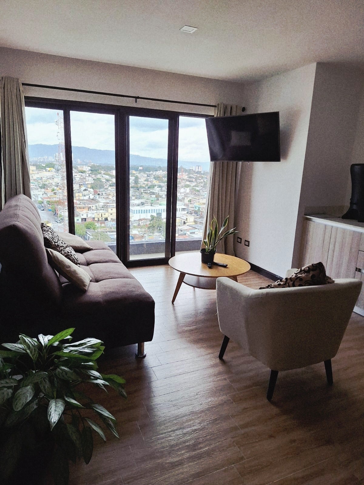 Feel the experience of staying in a brand new loft apartment in the beautiful country of Guatemala. Our apartment with modern, elegant touches that accompany an unparalleled view, provide calm and tranquility in one of the most exclusive areas of our country. You will have the opportunity to stay near shopping centers, restaurants, the hotel zone and a few minutes from the international airport.