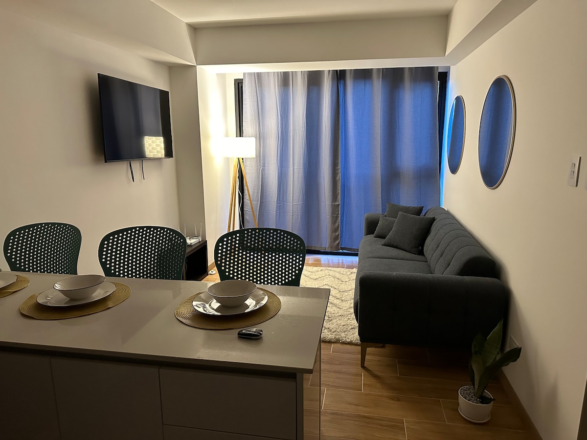 Apartamento entero tipo Loft. Cuenta con una hermosa terraza, 1 dormitorio abierto con cama Queen y A/C, baño privado , sala, comedor y cocineta totalmente equipada, lavadora y secadora de ropa. Con smart TV de 58" para entretenimiento y wifi. Incluye 1 parqueo gratuito en las instalaciones.