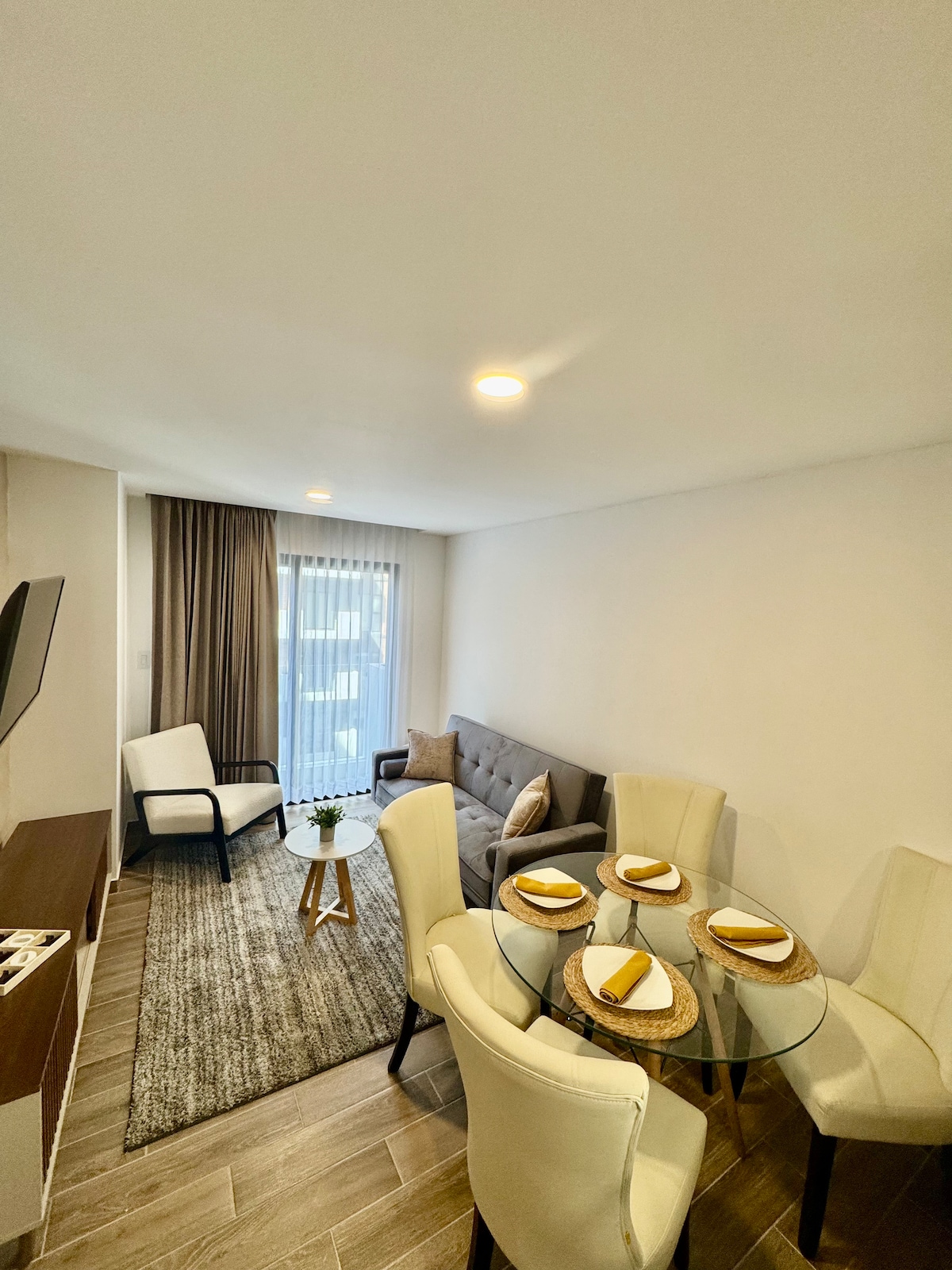 Descubre la comodidad y estilo de este hermoso apartamento totalmente equipado en un edificio moderno en Zona 11, Ciudad de Guatemala. Perfecto para viajes de negocios, vacaciones o visitas cortas, ofrece todo lo que necesitas para sentirte como en casa, con el beneficio de una ubicación estratégica y vistas espectaculares de la ciudad. Este apartamento no solo destaca por su ubicación y funcionalidad, sino también por su diseño moderno y elegante y una hermosa vista panorámica de la ciudad.