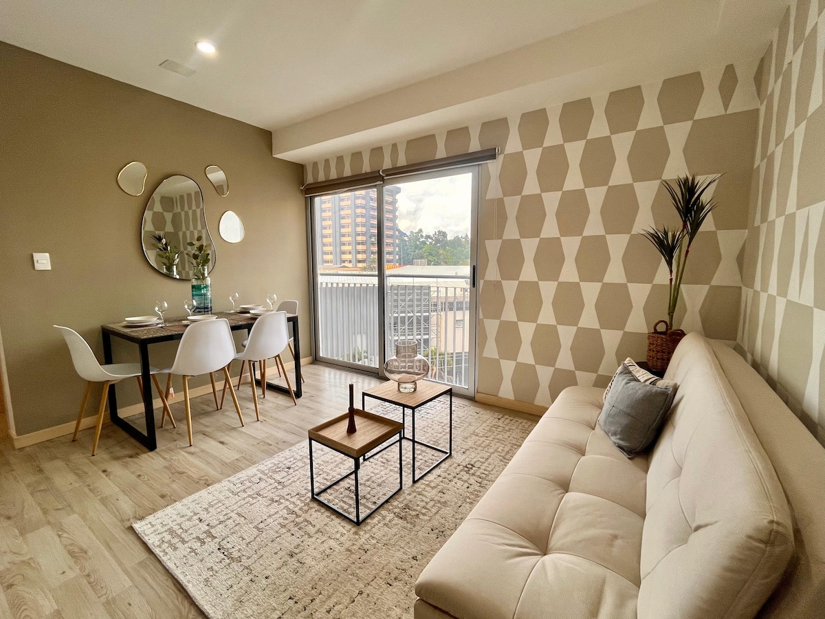Disfruta la experiencia de alojarte en un apartamento nuevo y acogedor tipo loft completamente nuevo en el bello país de Guatemala, con la mejor ubicación en zona 13. Nuestro apartamento con toques modernos, elegantes que acompañan de una vista sin igual, brindan calma y tranquilidad en una de las zona más exclusivas de nuestro país. Tendrás la oportunidad de alojarte cerca de centros comerciales, restaurantes, zona hotelera y a pocos minutos del aeropuerto internacional.