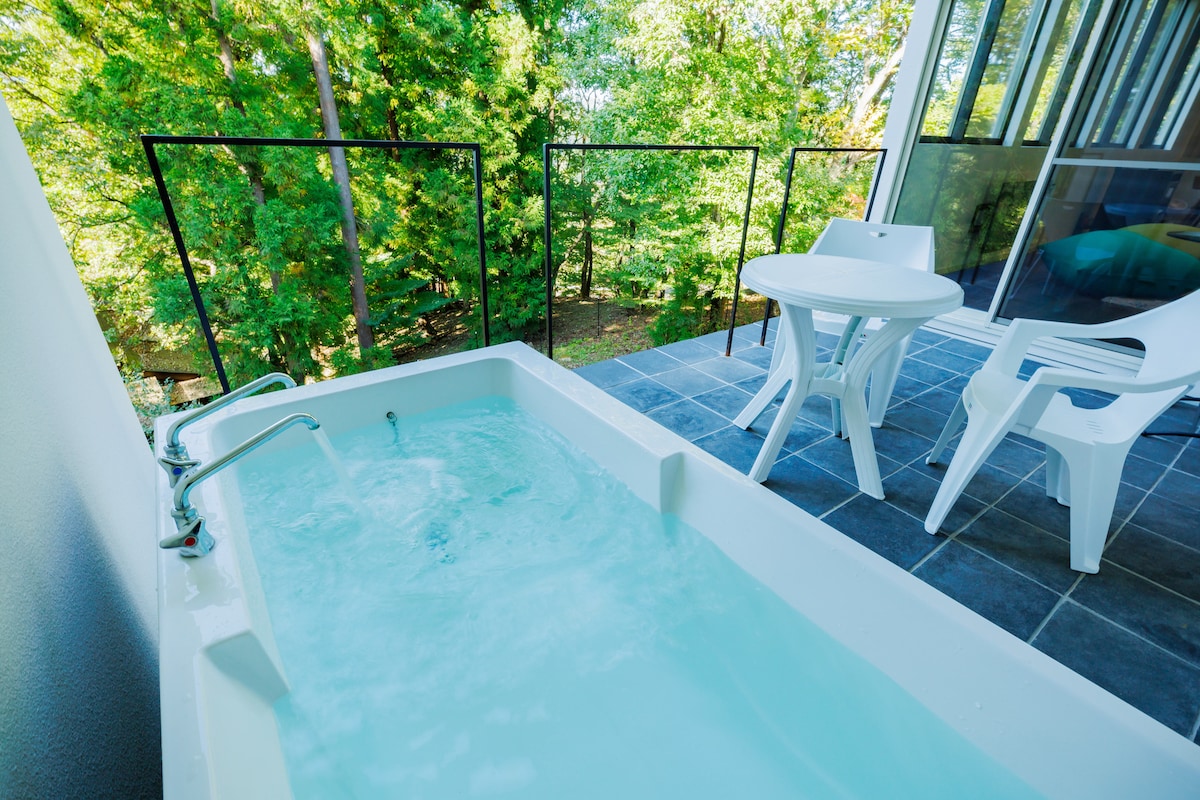 这座新建筑于 2022 年竣工。 走进这座外墙为黑色的别致建筑,通往客厅的石质走廊和高高的天花板会让你立刻忘记日常生活。 露天浴池四周绿树环绕,溪水潺潺,是冬季享受雪浴的绝佳场所。 浴池的出水口装饰着宫城县南部的特产--伊達冠石(Date Kanmuri Ishi),深受世界著名艺术家的喜爱。 在宽敞的木质甲板上,您可以坐在失重感座椅上享受森林浴。 清晨,您可以看到松鼠和鸟儿;夜晚,您甚至可以看到在灯光照耀下的森林中翱翔的帝王斑。 您可以在客厅和卧室使用 100 英寸大屏幕投影仪欣赏私人影院。 还提供显示器和办公桌,是工作度假的理想之选。 冬天是烧柴炉的季节。 尽情观赏火焰的变化,享受前所未有的特别时刻。 *预订和入住时,请阅读并遵守 "物业规则与限制"。