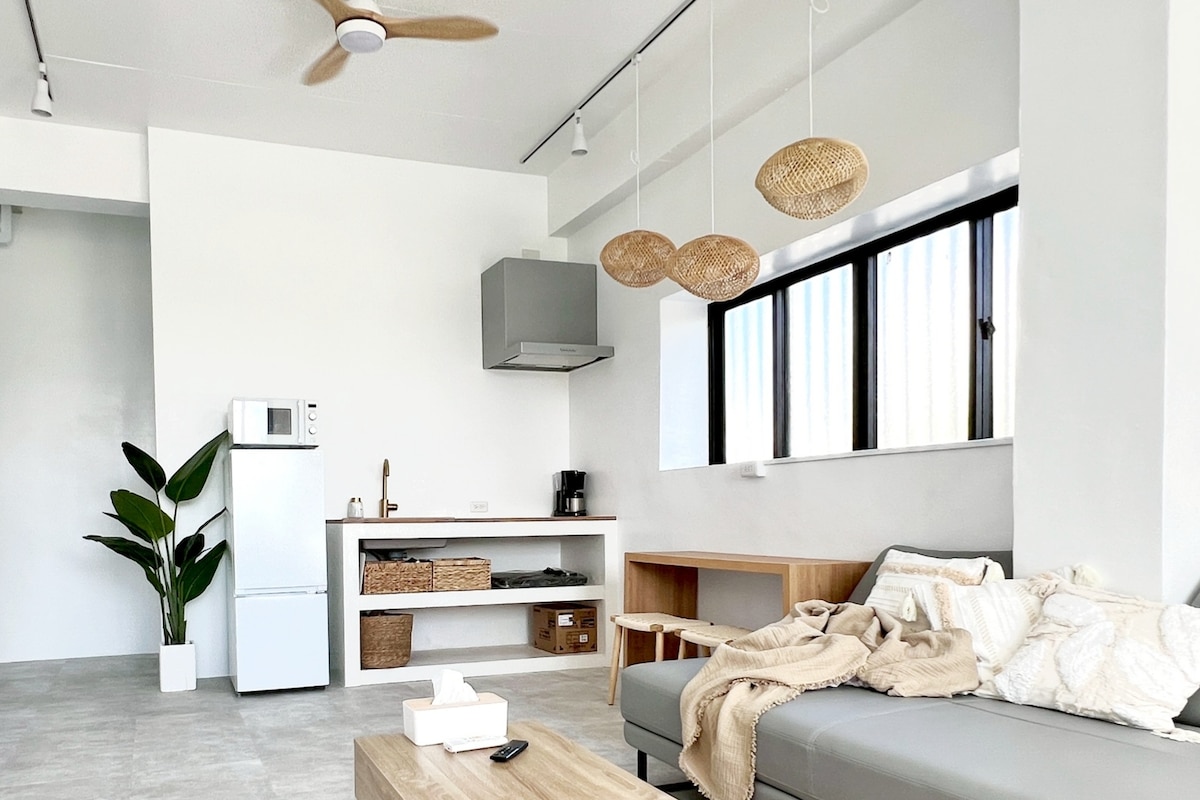 中心部に位置しながらとても落ち着いたエリアです。室内はアンティーク家具等シックな空間に寝具に100% 天然素材を使用したCOCO-MATのマットレスを採用しており旅や海でのアクティビティの後でも十分おくつろぎ頂けます! またキッチン用品も充実している他 洗濯器、乾燥器も設置致しておりますのでショートステイはもちろん長期滞在の方までお楽しみ頂けます! オプションで別料金にはなりますがベランダ等で楽しんで頂けるバーベキューセットやウクレレやキーボード等楽器の貸し出しもしております!詳しくはお問い合わせ下さい!楽しい旅の時間に是非! ➖設備 アメニティ➖ 〜寝具〜 COCO-MAT キングサイズ TEMPERソファベッド その他 〜台所〜 コンロ(2口)ハンドソープ 油 塩 胡椒 酢 洗剤 電子レンジ トースター ケトル 大型冷蔵庫 食器類 調理器具類 各種コーヒー器具 〜洗面所〜 バスタオル フェイスタオル シャンプー コンディショナー ボディーソープ ドライヤー トイレットペーパー 歯ブラシ 櫛 コットンセット カミソリ 使い捨てスリッパ ボディータオル スピーカー
