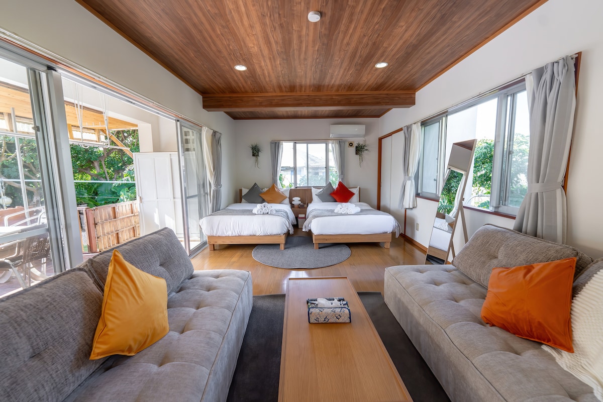 秘境ビーチまで徒歩2分|絶景オーシャンフロントヴィラ|定員5名2寝室|小型犬無料