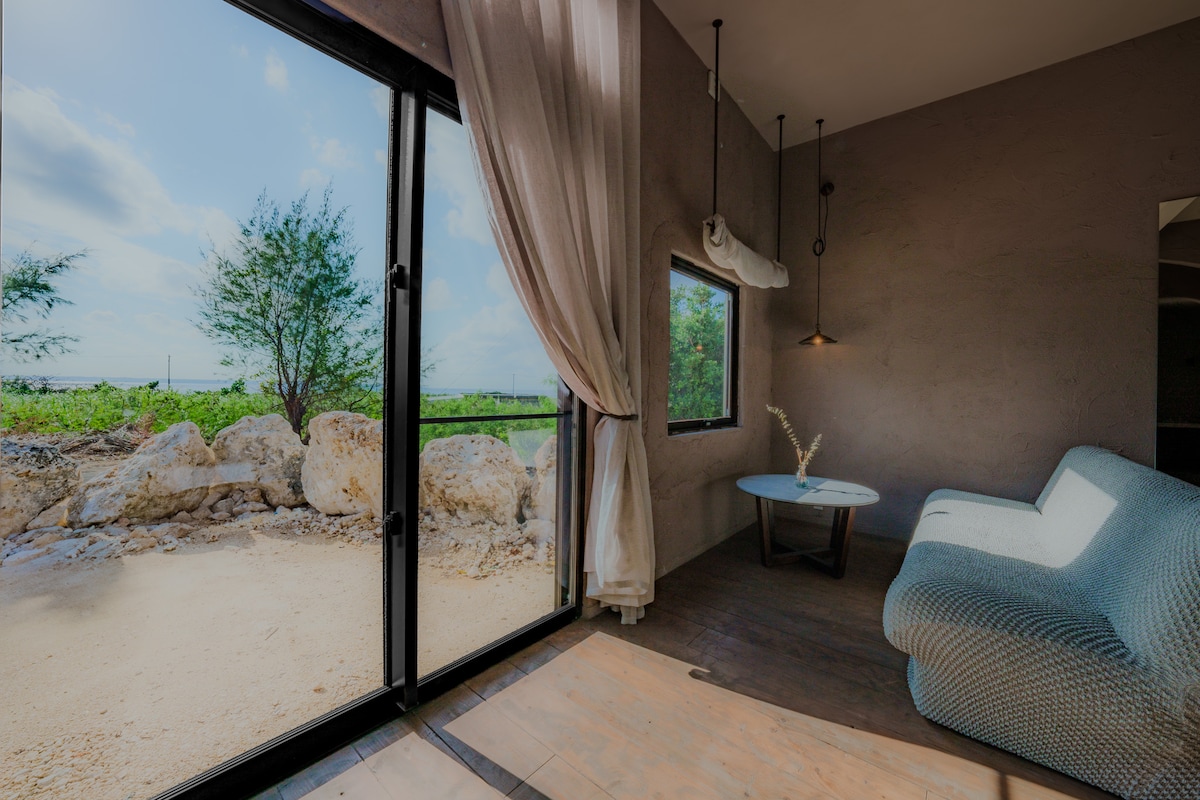 観光地では体験できない宮古島のどこか懐かしい雰囲気を色濃く感じられます。 宮古島の生活風景と自然を身近に感じながら、日々の喧騒から離れたリラックスしたひとときをお楽しみいただけます。 お風呂は軟水を使用しており、温泉のような入浴時間を体感できます。 一歩外に出ると、海の香りがする爽やかな風が吹き抜け、夜には一面の星空が広がります。星の瞬きに包まれて、静かな時間が流れ、心と体がリフレッシュされることでしょう。 宿から徒歩約2分には秘境ビーチがあります。 海の透明度は高く、観光シーズンでもプライベート感があります。 宮古島の生活を感じながら、海や自然と共に過ごす特別なひとときをお楽しみください。 *お客様滞在中のお部屋の清掃は行えません。 *宮古島という土地柄、一年を通して虫やヤモリが出るため、どうしても虫たちが室内におじゃまする場合があります。殺虫剤を用意しておりますので、ご自由にお使いくださいませ。