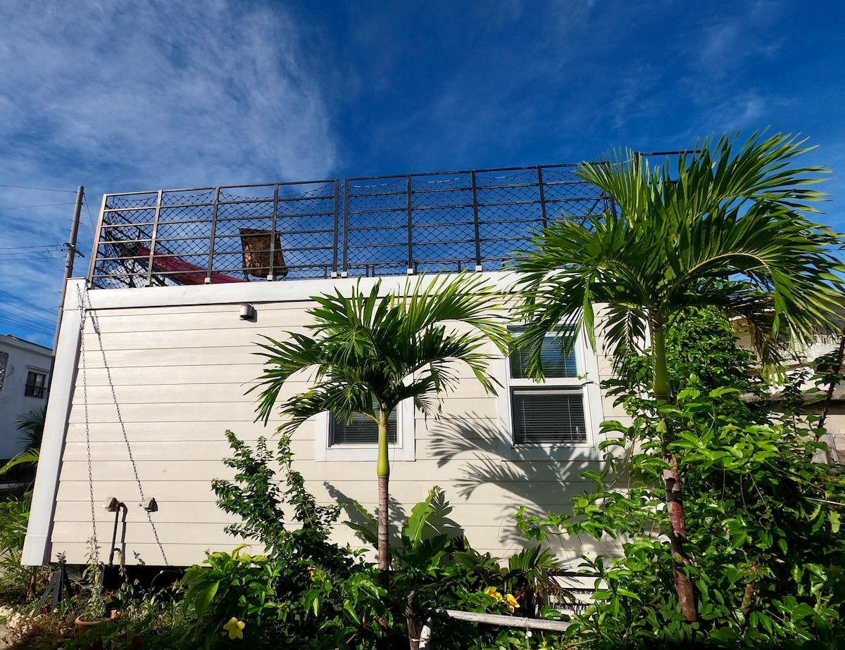 2020年1月に誕生した、バリアフリーの小さなゲストハウスです。 入口まではスロープ。室内にも段差はありません。 バスタブはありません。 少ない荷物で気軽に来ていただけるよう、たっぷりのタオルとアメニティ、部屋着(夏物のみ)をご用意しています。 自家焙煎のコーヒーをドリップバッグにして毎日ご提供します(当日焙煎)。 全館浄水システム「良水工房」と軟水器を導入しており、お部屋のお水は全て浄水&軟水化されています。 キッチンはありませんが、冷凍冷蔵庫、電子レンジ、トースター、電気ケトルはあります。車で3分のところにスーパーマーケット、徒歩圏内に飲食店もあります。 敷地内の自動販売機でドリンクとお菓子販売中。 敷地内のコインランドリー(有料)には洗濯乾燥機、大型乾燥機があります。 テレビはありません。高速WiFiでお仕事や動画視聴は可能です。 停電等でネットが切断されても、予備にStarlinkがあります。 屋上ではハンモックに寝そべって星空をどうぞ。 駐車場無料 電動アシスト自転車レンタル1日2000円(長期割引あり*1週間10000円) オーナーは日本人です。ご安心ください。