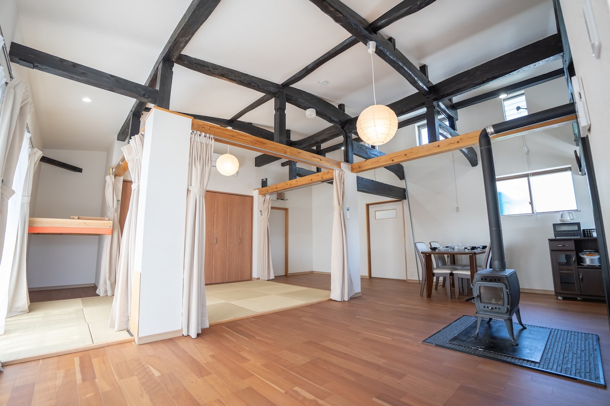 ○About this accomodation This property is renovated from a log cabin and an old house by owner himself with the idea of creating a relaxing space that suitable for farmstay. The owner is particular about his handcrafted furniture and the Irori (a traditional Japanese sunken hearth) in living room. Guests can use this Irori with Nabe meals (Japanese style hot pot cuisine) from autumn to spring.