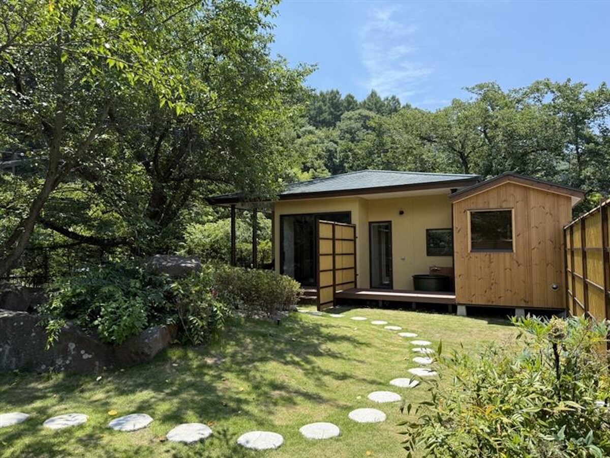 B棟 STAYCHELIN2025受賞宿 静かな100坪(敷地1500㎡)の森の庭付き丸ごと一棟貸切の新築ヴィラ。旅サラダや有吉の壁に本宿が出演しました。 広々としたヴィラで、心地よいひとときを過ごしませんか?自然豊かな森の中に建つ、一棟貸切の特別な空間です。静かなリビングでは、暖炉の心地よい暖かさが広がり、最新のAladdinプロジェクターでNETFLIXを楽しむことも。リラックスの時間は、最大7人が利用可能なサウナで体を芯から温めた後、屋外ジャグジーで涼むのがおすすめ。 広いウッドデッキテラスからは大自然を一望できます。特別な体験といえば、ガスBBQグリル(有料)を使ったアウトドアダイニング。焚き火を囲んでの語らいや、森を眺めながらの読書の時間も贅沢です。 寝心地抜群のシモンズのマットレスを使用したベッドルームは3部屋、最大収容人数は10名。さらに大規模な集まりの際は、隣接する2棟を合わせての利用も可能です。 アメニティはイタリア最大級のオーガニック認証、BALMUDAのキッチン機器や洗濯・乾燥機も完備。細部までこだわったこのヴィラで、極上のひとときをお過ごしください。