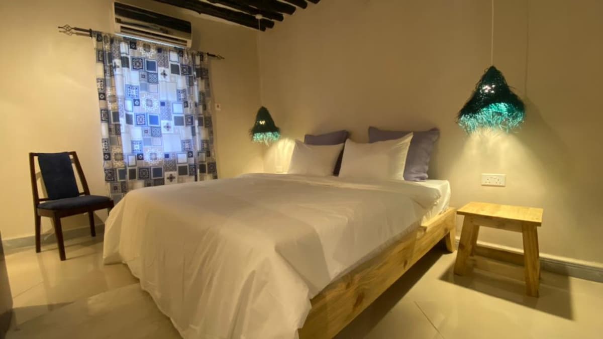 Discover the heart of Stone Town! Our room features a King-sized bed, private balcony, ensuite bathroom, TV, free WiFi, electric kettle, and access to the city's best rooftop view. Conveniently situated steps away from Forodhani Park, Zanzibar Coffee House, Lukman Restaurant for Swahili cuisine, and the spice market. It's just a 4-minute walk to the seaport and the beautiful sandy Stone Town beach, and a short 10-12 minute drive from the airport. Begin your unforgettable Zanzibar adventure here!
