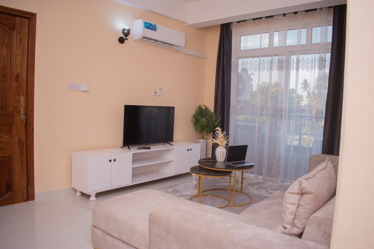 Keep it simple at this peaceful and centrally located apartment in Stone Town. Set in a traditional building, the space offers comfort and privacy while being close to major attractions, shops, and restaurants. The apartment features a bright living area, air conditioning, ceiling fan, TV, and comfortable seating. Ideal for couples, solo travelers, or business guests seeking a calm stay in the heart of the historic area.