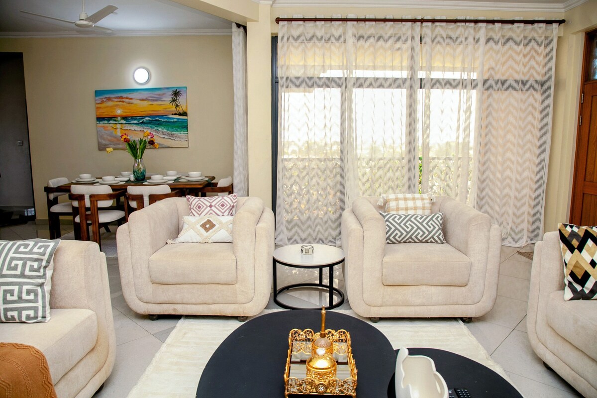 Tucked in the town of Zanzibar , this modern home offers starry night views of town of zanzibar, multiple comfortable living spaces, and modern amenities. It’s a five-minute walk from michenzani mall, ten-minute walk from Stone town and ten-minutes drive from aiport Enjoy our stylish brand-new serviced apartment with unlimited free wifi and 50inch smart tv with a decorder Offering luxury to business travellers and visitors