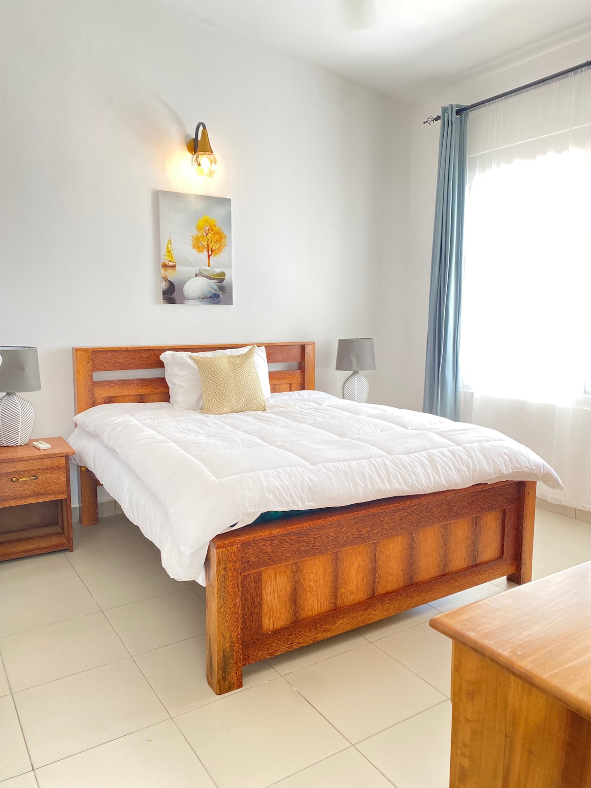 Private luxury house just 10 min drive from Stone Town and local beaches. 5 min drive from Zanzibar International Airport. Less than 1 hour drive to East/ North Zanzibar coast beaches. 4 bedrooms, two of which are en-suite, walk-in wardrobe in master bedroom. All rooms are air-conditioned. Fully equipped kitchen, specious dining and living rooms. Private parking and a garage. We can help to arrange airport pick up/ drop off, rent a car, with or without private driver.