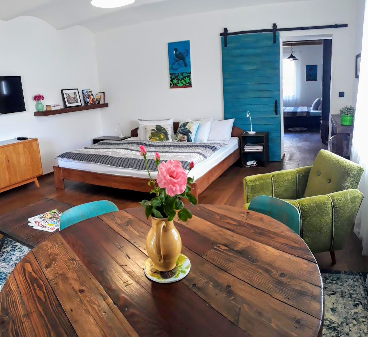 Apartmán u Českého ráje v klidné obci s kompletní občanskou vybavenosti poblíž Mladé Boleslavi s parkováním přímo u domu. Možnost výletů, sportu a relaxu. Je součástí rodinného domu, ve kterém bydlím se svými dětmi, se soukromým vstupem. Vaše návštěvy nám pomáhají splácet vysokou hypotéku na dům. Děkujeme. Od 30.8.2024 vyniká luxusní dubovou manželskou posteli.