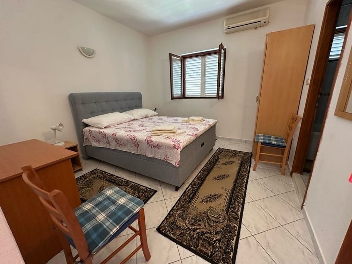 Uživajte u ovom ugodnom smještaju u centru mjesta gdje vam je sve nadohvat ruke. Apartman ima prekrasan balkon s prelijepim pogledom na more, kuhinju, sobu s bračnim krevetom (160x200) i zasebnom kupaonicom, kuhinjom i blagovaonom, kupaonom i dnevnim boravkom sa kaučom na razvlačenje (150x200). Apartman također nudi TV, klimu, internet, parkirno mjesto te upotrebu roštilja. Kućni ljubimci su dozvoljeni.