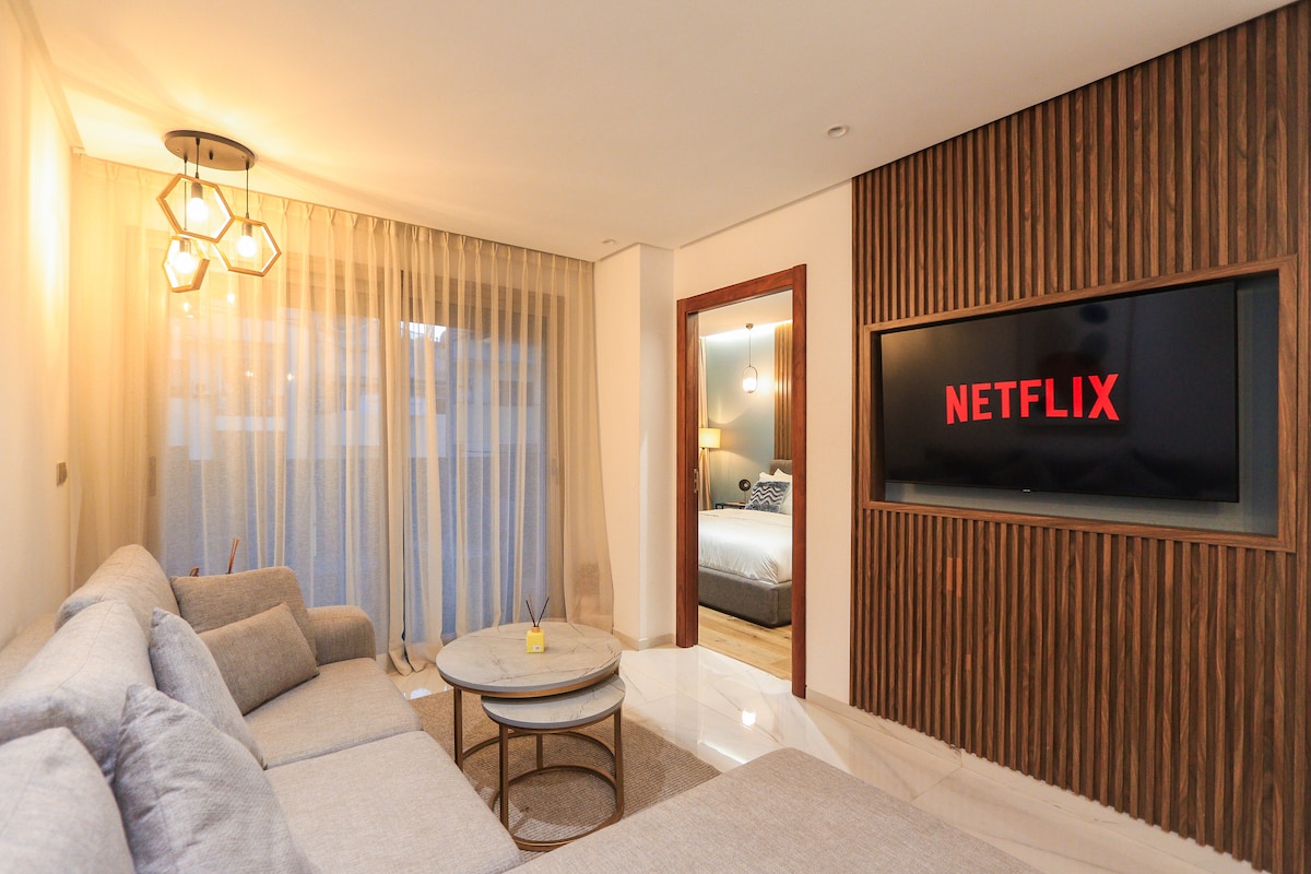 Cet appartement Airbnb de luxe propose deux chambres climatisées, une PlayStation 5, Netflix, des toilettes équipées de luxe, une cuisine très bien équipée, et deux télévisions haut-de-gamme avec une connexion fibre optique ultra-rapide. entièrement climatisé, assurant un confort optimal dans toutes les parties de la maison. Profitez d'une atmosphère agréable tout au long de votre séjour. Ajoutant à votre confort, l'appartement offre également un parking intérieur gratuit dans l'immeuble.