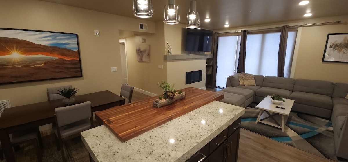 Welcome to Hidden Canyon Getaway, your home away from home. Just five miles south of downtown, this bright, beautifully decorated townhome combines the warmth of a personal residence with the amenities of a resort — offering the perfect balance of relaxation and adventure. With 3 spacious bedrooms, 2.5 baths, a cozy loft lounge, and a two-car garage for all your bikes, jeeps, or adventure gear, this home was designed for families, couples, and explorers who crave both comfort and convenience.