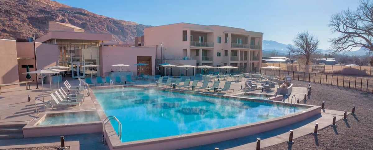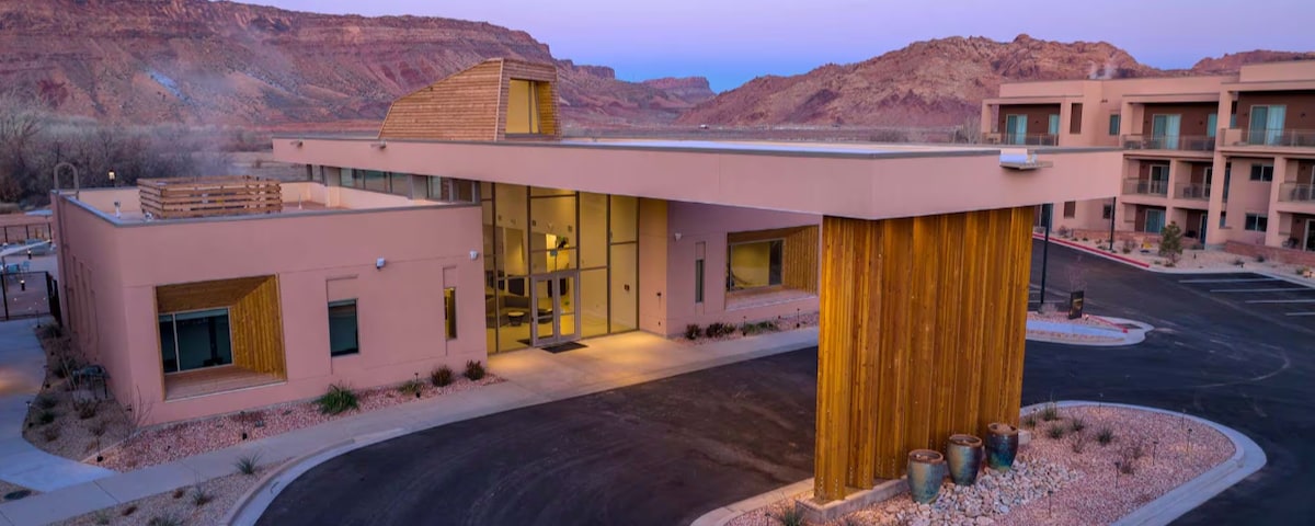 Wake up to red rock views and end the day by the fire pit under desert stars. Just minutes from Arches and Canyonlands National Park, this all-suite stay gives you space to spread out, splash around, and slow down. Hit the trails, soak in a hot tub, or watch the kids take over the splash pad. With free breakfast, pools, and direct river access, it’s not just where you sleep—it’s part of the adventure. Relaxed. Easy. All Moab.