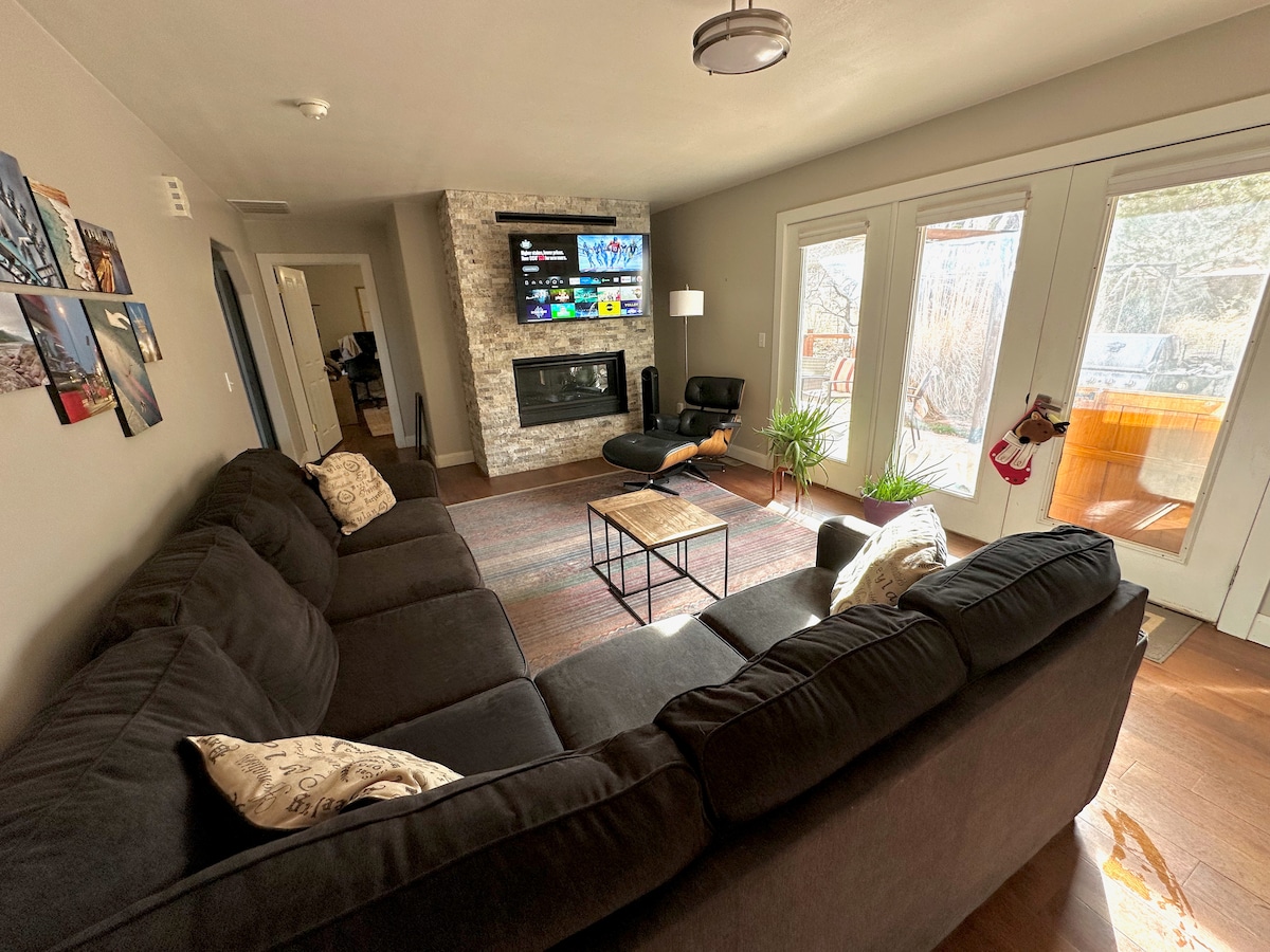 This spacious home has picturesque views and LOADS of PARKING! Only 8 min to downtown. 2 King beds, 1 Queen. Well-equipped kitchen, WiFi, gas grill, patio & fenced backyard with FIRE PIT! 2-car garage, wide street with free parking, extra dirt lot for more parking! 1 min walk to pool & hottub. Extremely safe & quiet neighborhood while close to town. Responsive hosts to make your stay fantastic. Book this home for your vacation stay; we'll take very good care of you!