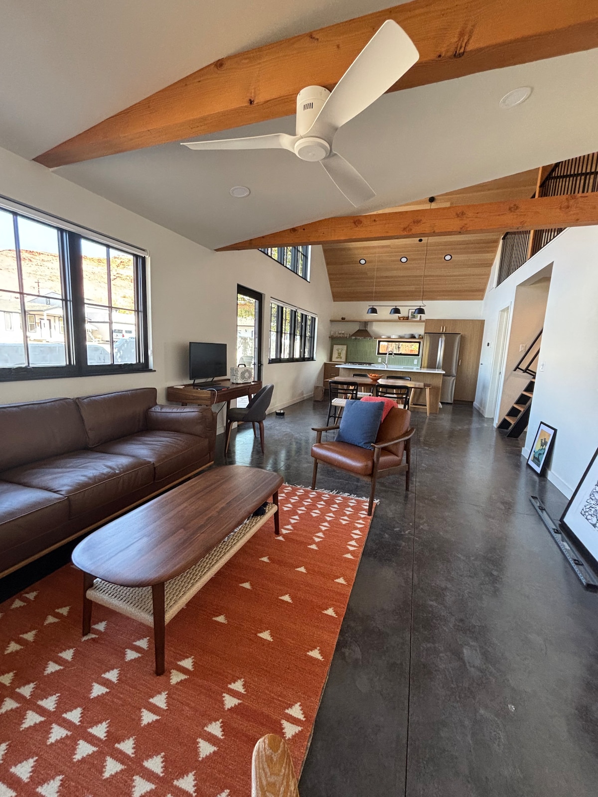 Situated within a luxurious neighborhood, next to the Moab Golf Course, our home is at the end of a cul-de-sac. It's very secluded and quiet. It's the most private house you can rent within Coyote Run neighborhood. The window views show the beauty of Moab; red rock walls and cottonwood trees. All bedrooms have their own full bathroom, including soaker tubs. Upstairs bedrooms and loft are hardwood floors. The ground level floor features polished concrete.