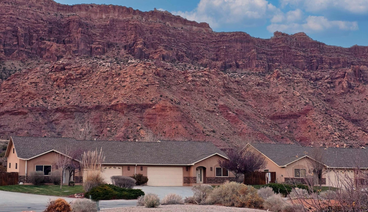 Less than 10 minutes from downtown Moab shopping and restaurants; nestled against the breathtaking slickrock by the golf course. Our property features a living room, fully stocked kitchen, dining area and bathroom downstairs. Washer and dryer for our guest's comfort. Upstairs features 2 bedrooms and second bathroom plus loft with futon, games, TV, toys and books for our little visitors. We have one car garage and patio with grill. Pool is shared with rest of the guests in our small complex.