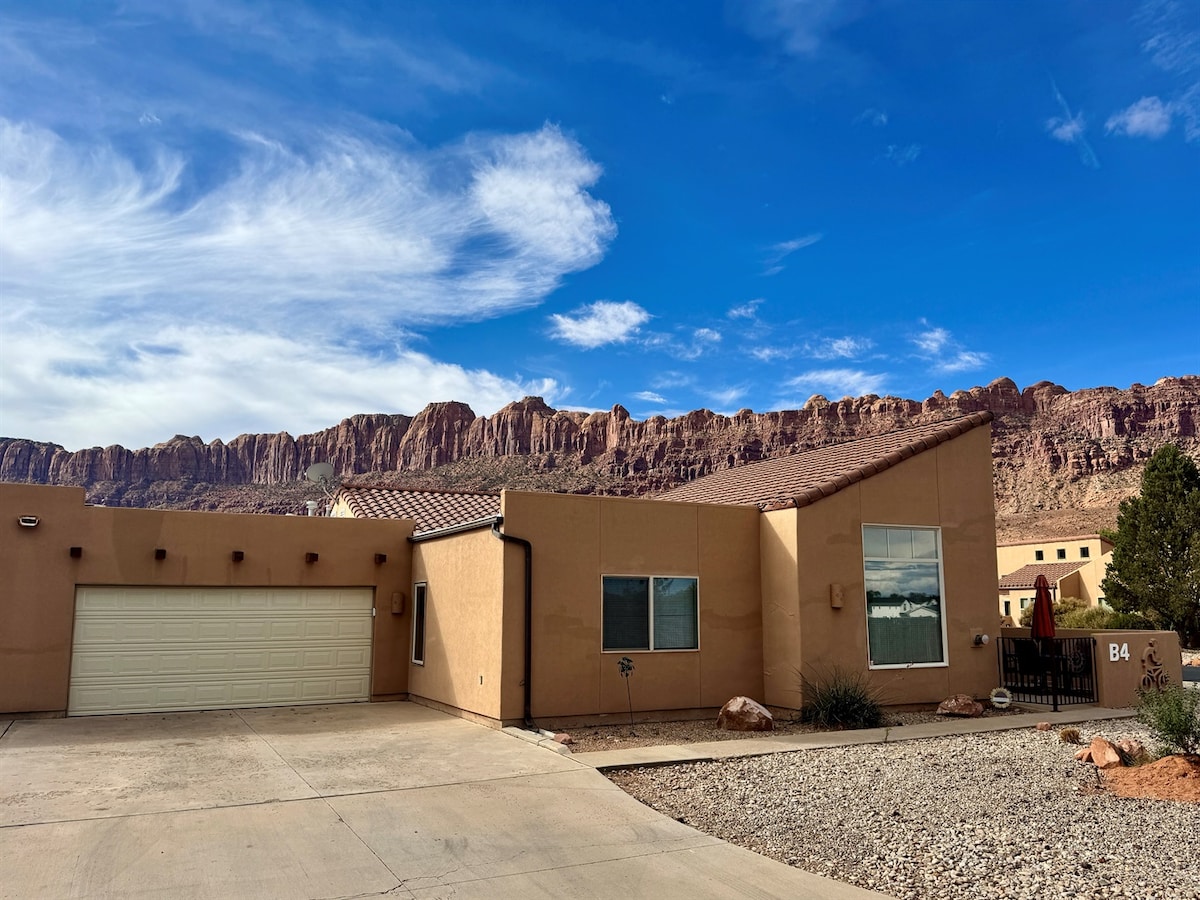 Stay in this adobe townhome featuring spectacular views of the red rocks and the La Sal Mountains from your private patio. This property features southwest decor, 3 bedrooms w/king & queen beds, two and half bathrooms, ready to use kitchen, dining area, large screen TV’s, internet, and a 2 car garage for your toys. Located 5 minutes south of downtown Moab. Minutes from Arches National Park, the Colorado River, Canyon Lands Park, and spectacular trails for motorized and non-motorized travel.