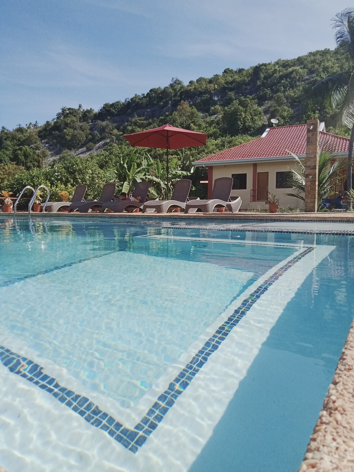 We are located in Basdiot, Moalboal. The word "basdiot" in cebuano, literally translates to "little sand" since the area is mostly known as a dive spot. We do have a fantastic view of the ocean. And if you are into snorkeling or diving - we're close to a beautiful and lively reef. The rooms or villas are fully airconditioned. We have hot and cold showers. A security guard is in the premises 24/7. Each room has a water dispenser. And great wifi.