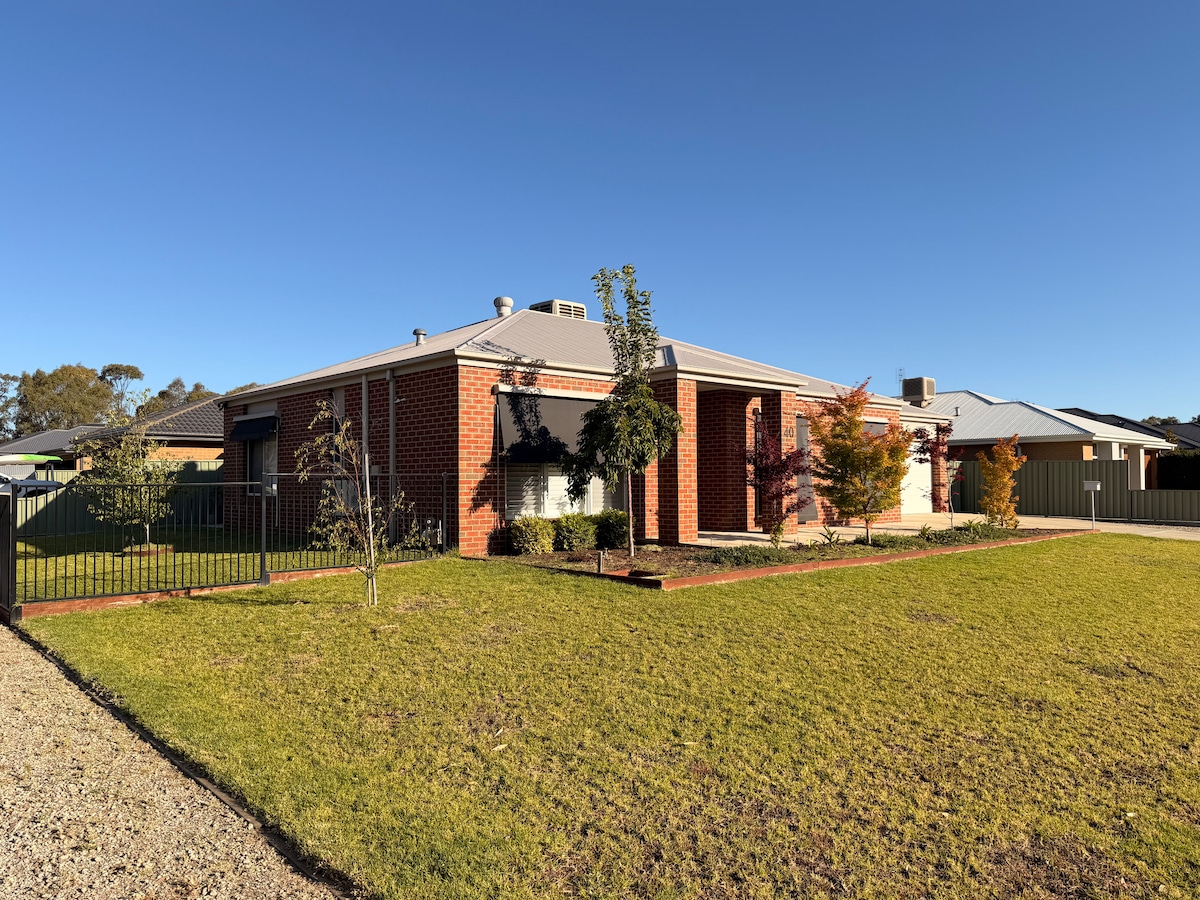 5 minute walk to Campaspe River Walk which follows the meandering Campaspe River along a sealed footpath/cycleway that provides for walkers, joggers and cyclists through natural bushland. The walk concludes at Hopwood Gardens in the heart of the historic Port of Echuca (20 minute walk into centre, 10 minute bike ride). Self check-in with keys provided in keysafe, offstreet parking, A homely, bright open plan living consisting of 3 bdrm, 1 bath & separate toilet.