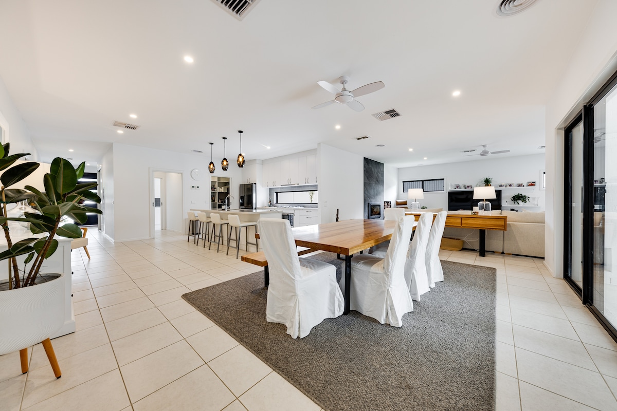 Moama retreat, fireplace + pool, sleeps 8