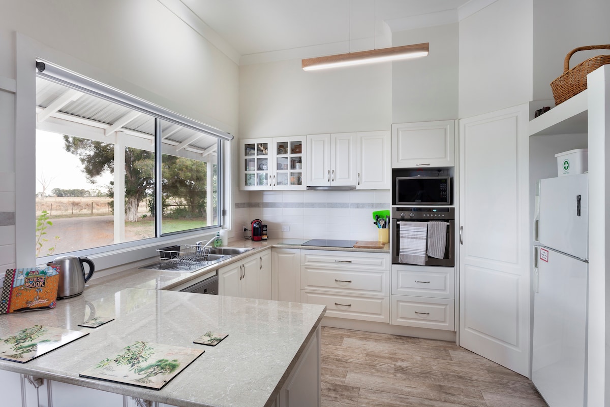 This three bedroom/two bathroom home is accessed by a private tree-lined driveway. It has been completely renovated. Visitors can enjoy the modern open plan kitchen, living and meals with a cosy indoor wood fireplace. Located just 7 minutes from Tatura township.