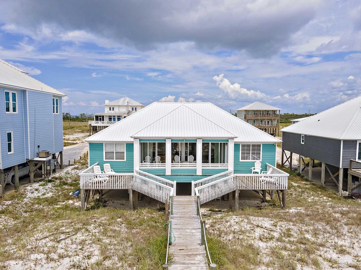 ✔ 4 Bedrooms, 2 Bathrooms – Sleeps Up to 10 ✔ Unobstructed Ocean Views from Wrap-Around Deck ✔ Full Putt Putt Course & Corn Hole Under the House ✔ Just 50 Steps to the Beach- Never Leave Sand ✔ Dog-Friendly Home & Beach – Bring Your Pup! (w/ fee) ✔ Spacious Deck with Adirondack & Lounge Chairs + Outdoor Shower ✔ Beach Wagon, Chairs, Toys & Boogie Boards Provided ✔ 5 Minutes to Local Restaurants, 20 to Downtown Gulf Shores ✔ High Chair, Pack ’n Play, Linens, Towels & Soaps Included