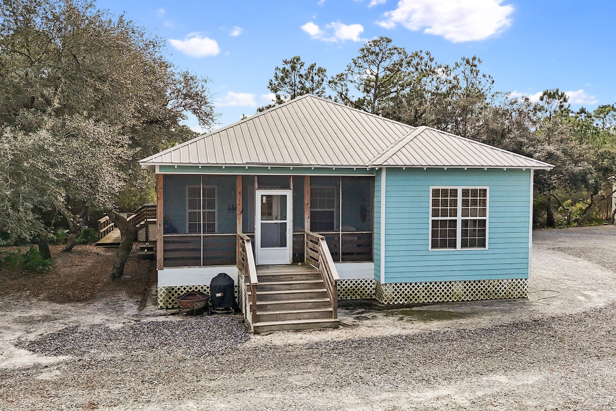 “Simpler Times in the Pines” has a comfortable feel with a mix of new and vintage furnishings, nicely decorated with a beachy, birding theme! Two smart TVs, living room sectional and tile throughout the home. The screened in porch plus covered porch with firepit & grill provide great outdoor space ! Your furry friends are welcome ! Fully stocked kitchen! Beach gear and kids games ! We provide all you will need for a great, laid back peaceful family friendly stay!