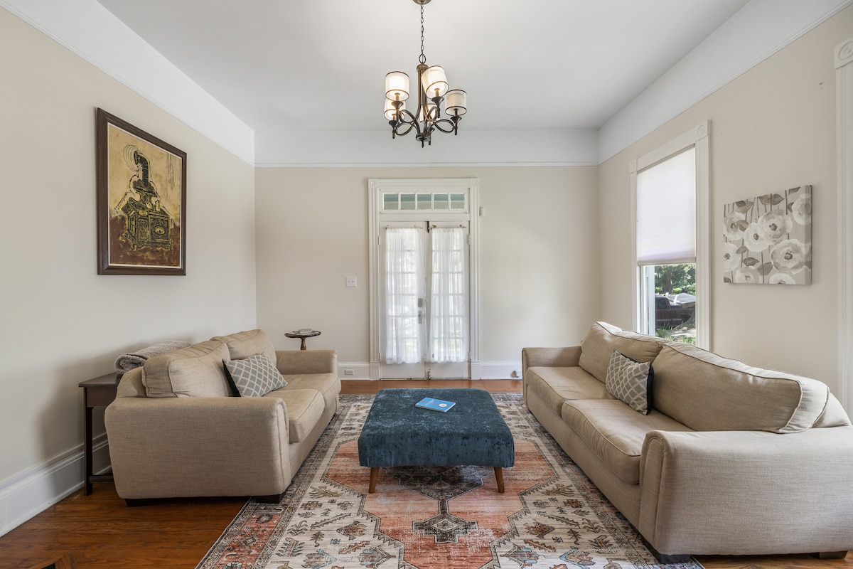 Discover the charm of our spacious Midtown Downtown rental, perfect for Mardi Gras enthusiasts. This 1-bedroom, 1-bathroom unit features 12-foot ceilings, hardwood floors, and a fully equipped kitchen. Enjoy amenities like free WiFi, a fire pit, and an EV charger. Located in the Oakleigh Historic District, you're steps from Washington Square Park, Callaghan's Pub, and more. Ideal for families and pet-friendly stays. Book your stay today and immerse yourself in the vibrant culture of Mobile!