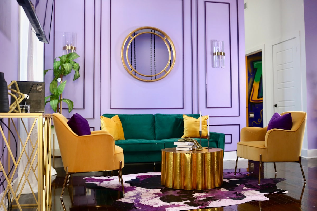 This lovely two-bedroom condo with a Mardi Gras motif will serve as your home away from home as you unwind and experience the Southern hospitality of the Port City. Conveniently located in the heart of Downtown, within walking distance of: • Parks • Art galleries • Theaters • Restaurants • Sports Bars • Night Clubs With city views, a spacious design, and lovely natural light you can rest in style. This beautiful condo is a perfect space for you to retreat, relax, and revive yourself.